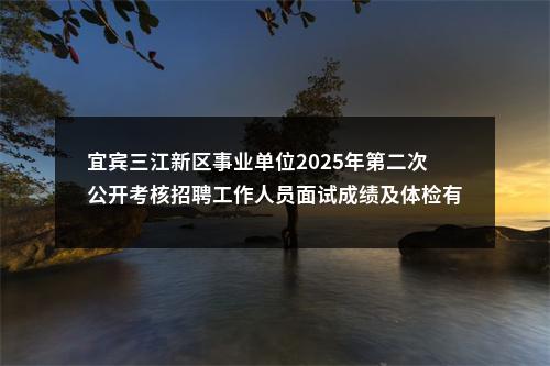 根据《宜宾三江新区事业单位2025年第二次公开考核招聘工作人员公告》规定,现将宜宾三江新区事业单位2025年第二次公开考核招聘工作人员面试成绩及体检有关事项公告如下: