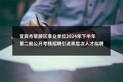 根据中共宜宾市翠屏区委组织部、宜宾市翠屏区人力资源和社会保障局《关于宜宾市翠屏区事业单位2024年下半年第二批公开考核招聘引进高层次人才的公告》规定,现将拟聘用人员予以公示。