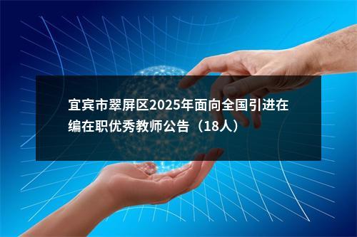 声明:专注 宜宾市翠屏区2025年面向全国引进在编在职优秀教师公告(18人) 相关岗位分析;专业指导面试技巧;保障就业成功概率。